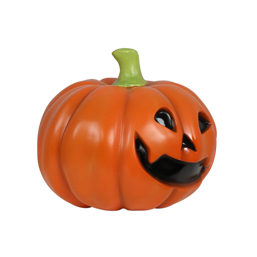 Create a spectacular Halloween display for your visitors with this 40 cm Pumpkin statue. It is sculpted and painted in the finest detail for a spooky look. This product is available in illuminated and non-illuminated variations. It is made of durable fiberglass resin that can withstand any weather, making it an ideal display for any indoor and outdoor environment.